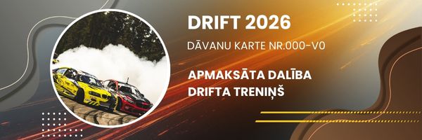 1. DĀVANU KARTE - DRIFTA SACENSĪBU DALĪBAS MAKSAI 2026. GADA SEZONĀ LATVIJAS DRIFTA ČEMPIONĀTA SACENSĪBĀS, DODIES PIE DRIFTERA, UN NEZINI KO VIŅAM UZDĀVINĀT, TU NOTEIKTI VIŅU PĀRSTEIGSI, JA DĀVANĀ PASNIEGSI DĀVANU KARTI, KAS BŪS BEZMAKSAS DALĪBA DRIFTA SACENSĪBĀS. MĒS ZINĀM, KA ŠĀDU DĀVANU NOVĒRTĒS JEBKURŠ DRIFTERIS. SUMMA 175 EUR