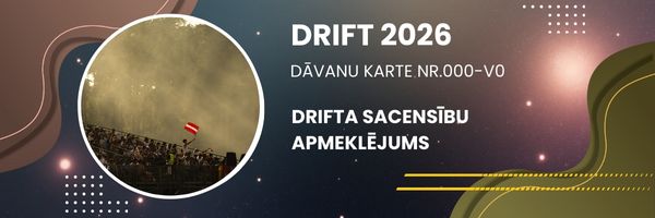 3. DĀVANU KARTE- DRIFTA SACENSĪBU APMEKLĒJUMS 2026. GADA SEZONĀ! NOTEIKTI LIELISKA DĀVANA, AR KURU IZDOSIES PĀRSTEIGT JEBKURU! IEGĀDĀJOTIES ŠO DĀVANU KARTI TĀS ĪPAŠNIEKS VARĒS IZVĒLĒTIES KURU NO 2026. GADA PASĀKUMIEM, IZŅEMOT DRIFT MASTERS ( 24.-25.07.2026- TUR BIĻETES JAU IR PĀRDOŠANĀ), ŠO KARTI IZMANTOT. DĀVANU KARTE DARBOSIES UZ KĀDU NO ŠIEM PASĀKUMIEM- SEZONAS ATKLĀŠANA MAIJS, JĒKABPILS DRIFTS JŪNIJS, DAUGAVPILS DRIFTA FESTIVĀLS JŪLIJS, SPEEDWAY DRIFT AUGUSTS, RAGANAS KATLA DRIFTS SEPTEMBRĪ, UN LIELAIS SEZONAS NOSLĒGUMS OKTOBRĪ. SUMMA 30 EUR