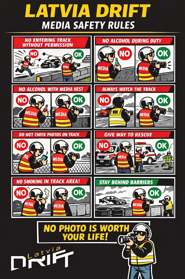 By registering for Latvia Drift track days / practices, media representatives are directly involved in the event activities.